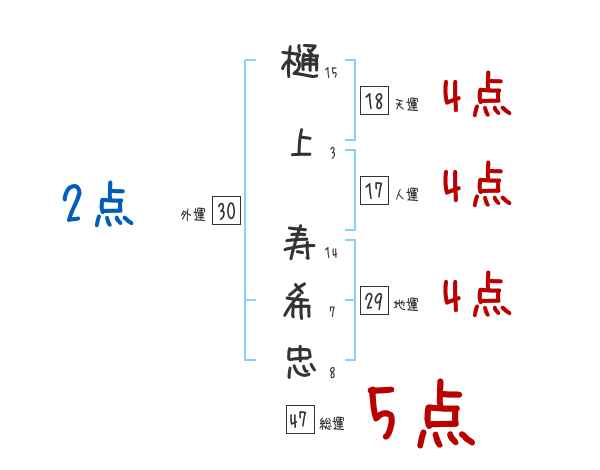 樋上寿希忠さんの画数の鑑定結果