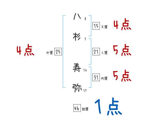 天運![]() | 八杉寿弥さんの天運は15画の4つ星!人徳があり出世する。順調に物事を進め円満な人生。 家系が持つ宿命的な運勢を表します。祖先から受け継いだ苗字ですので自分の力が及びません。家柄を象徴します。 |
