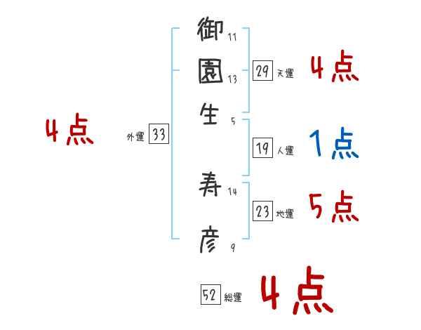 御園生寿彦さんの画数の鑑定結果