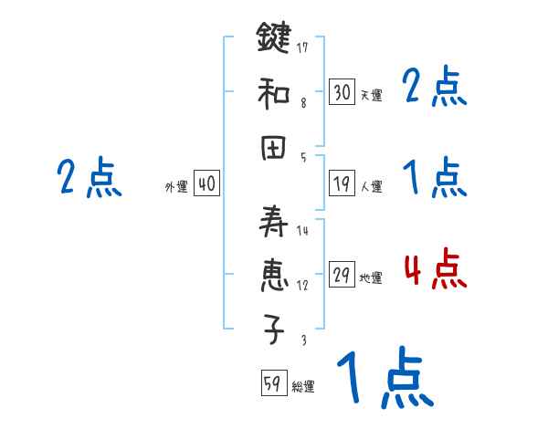 鍵和田寿恵子さんの画数の鑑定結果