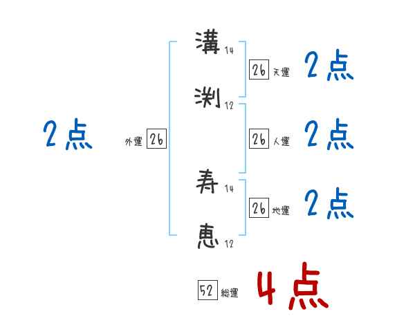 外運![]() | 溝渕寿恵さんの外運は26画の2つ星!波瀾万丈かも。信頼できる人を大事にしましょう。 生活面を象徴する運勢です。外部から受ける影響力を表し、結婚運、家庭運や職場、環境への順応性を表します。 |