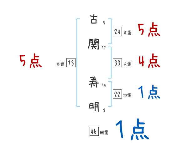 古関寿明さんの画数の鑑定結果