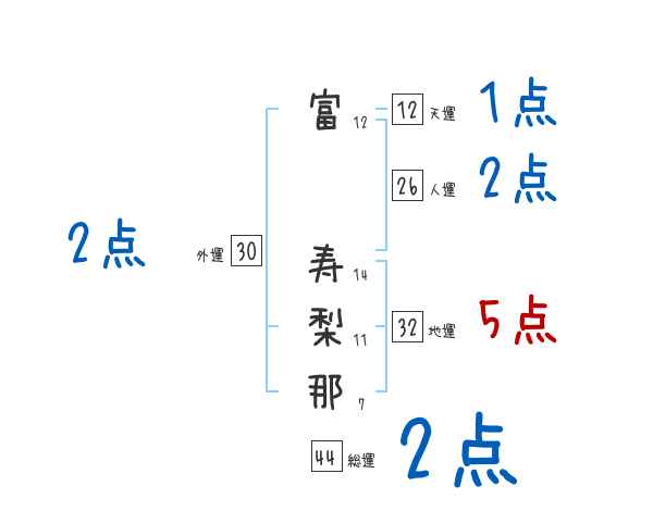 富寿梨那さんの画数の鑑定結果