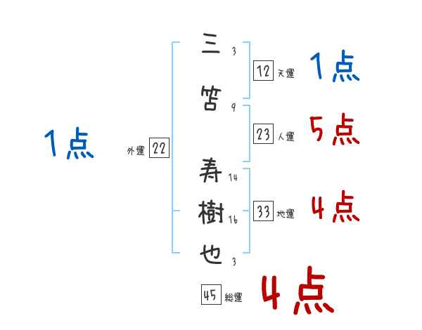 天運![]() | 三笘寿樹也さんの天運は12画の1つ星!簡単な失敗で諦めてしまいやすいかも。着実に行動すると良いでしょう。 家系が持つ宿命的な運勢を表します。祖先から受け継いだ苗字ですので自分の力が及びません。家柄を象徴します。 |