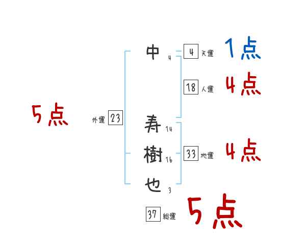 天運![]() | 中寿樹也さんの天運は4画の1つ星!感情が不安定で苦労するかも。周囲との協調を心掛けましょう。 家系が持つ宿命的な運勢を表します。祖先から受け継いだ苗字ですので自分の力が及びません。家柄を象徴します。 |