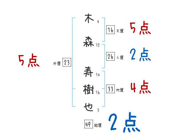 外運![]() | 木森寿樹也さんの外運は23画の5つ星!想像力に優れ活力がある。一代で成功し名誉を手に入れる。 生活面を象徴する運勢です。外部から受ける影響力を表し、結婚運、家庭運や職場、環境への順応性を表します。 |