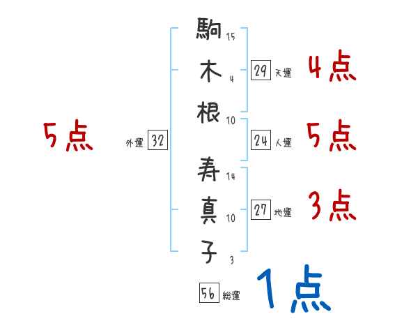 駒木根寿真子さんの画数の鑑定結果
