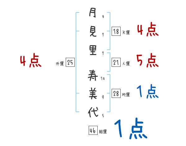 天運![]() | 月見里寿美代さんの天運は18画の4つ星!情熱的で剛気。忍耐力があり信頼される。 家系が持つ宿命的な運勢を表します。祖先から受け継いだ苗字ですので自分の力が及びません。家柄を象徴します。 |