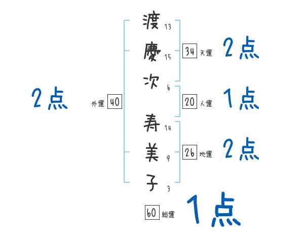 渡慶次寿美子さんの画数の鑑定結果