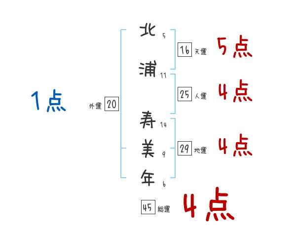 天運![]() | 北浦寿美年さんの天運は16画の5つ星!人望が厚く大きく発展する。逆転成功が見える。 家系が持つ宿命的な運勢を表します。祖先から受け継いだ苗字ですので自分の力が及びません。家柄を象徴します。 |