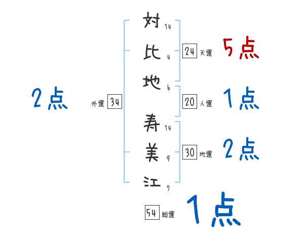 対比地寿美江さんの画数の鑑定結果