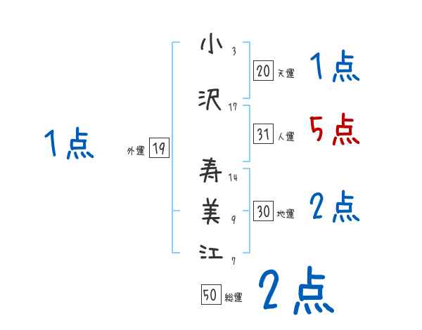 小沢寿美江さんの画数の鑑定結果