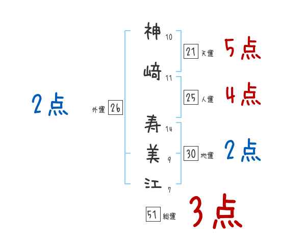 神﨑寿美江さんの画数の鑑定結果