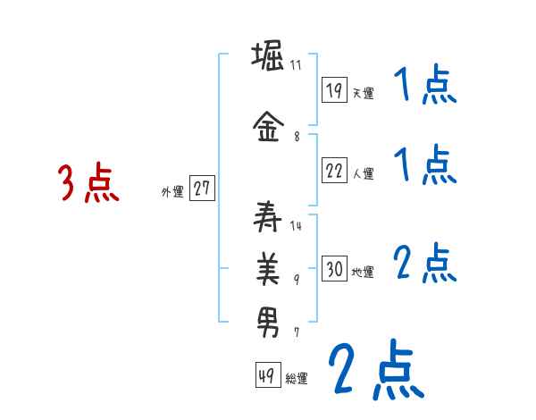 外運![]() | 堀金寿美男さんの外運は27画の3つ星!頭脳明晰だが強情で摩擦が多い傾向。孤立に注意。 生活面を象徴する運勢です。外部から受ける影響力を表し、結婚運、家庭運や職場、環境への順応性を表します。 |
