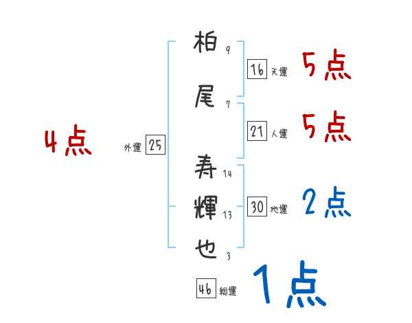 人運![]() | 柏尾寿輝也さんの人運は21画の5つ星!統率力がある。独立し成功する。名誉を手に入れる。 性格や才能などを表す2番目に重要な運勢です。人間関係や協調性、社会的な成功に影響します。主に20歳から50歳ぐらいまでの中年期の運勢を表します。 |