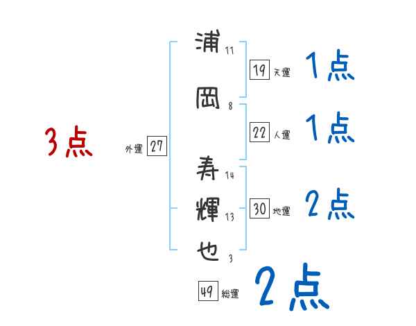 浦岡寿輝也さんの画数の鑑定結果