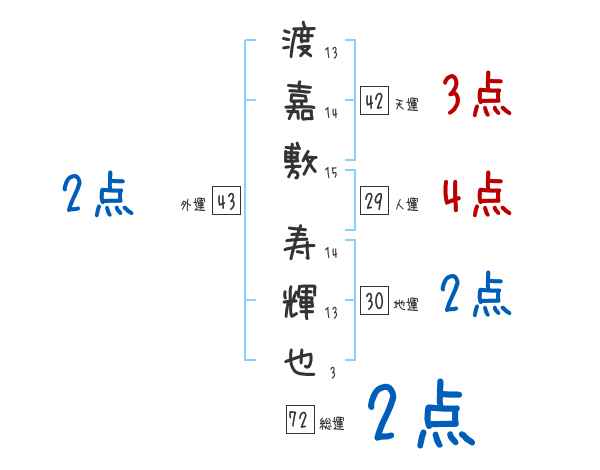 渡嘉敷寿輝也さんの画数の鑑定結果