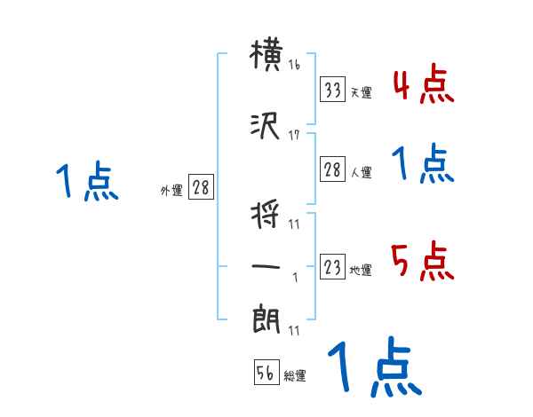 横沢将一朗さんの画数の鑑定結果