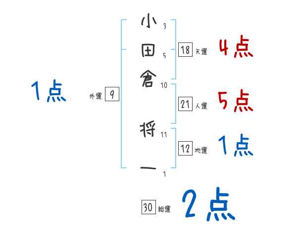 小田倉将一さんの画数の鑑定結果
