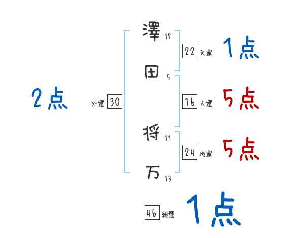 澤田将万さんの画数の鑑定結果