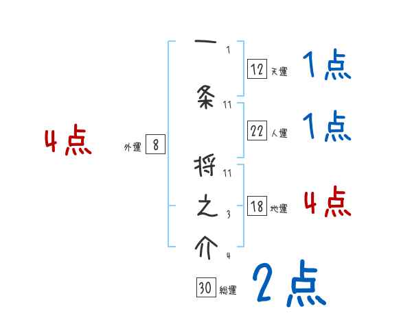 外運![]() | 一条将之介さんの外運は8画の4つ星!勤勉家。根気強く努力し成功する。忍耐力がある。 生活面を象徴する運勢です。外部から受ける影響力を表し、結婚運、家庭運や職場、環境への順応性を表します。 |