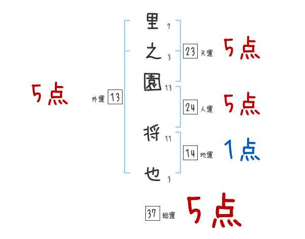 天運![]() | 里之園将也さんの天運は23画の5つ星!想像力に優れ活力がある。一代で成功し名誉を手に入れる。 家系が持つ宿命的な運勢を表します。祖先から受け継いだ苗字ですので自分の力が及びません。家柄を象徴します。 |