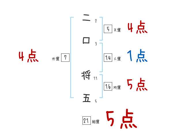 二口将五さんの画数の鑑定結果