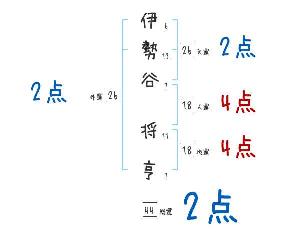 伊勢谷将亨さんの画数の鑑定結果