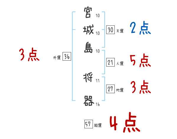 宮城島将器さんの画数の鑑定結果