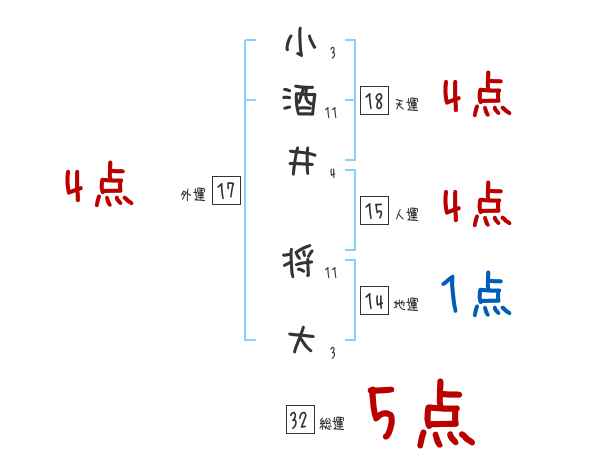 小酒井将大さんの画数の鑑定結果