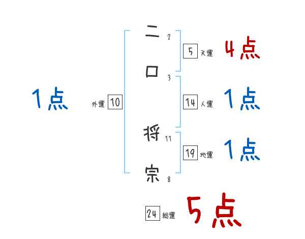 二口将宗さんの画数の鑑定結果