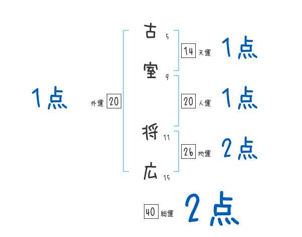 古室将広さんの画数の鑑定結果
