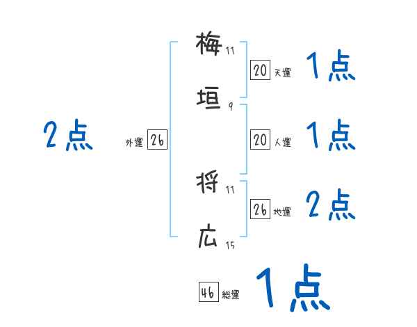 梅垣将広さんの画数の鑑定結果
