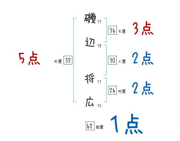 磯辺将広さんの画数の鑑定結果