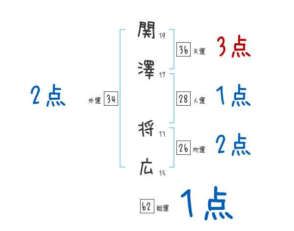 関澤将広さんの画数の鑑定結果