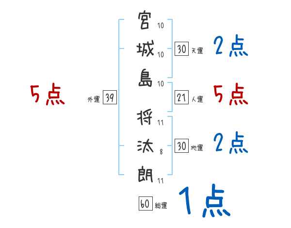 宮城島将汰朗さんの画数の鑑定結果