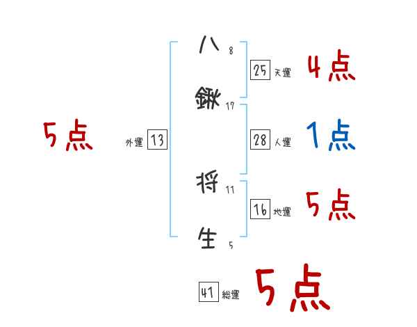 八鍬将生さんの画数の鑑定結果