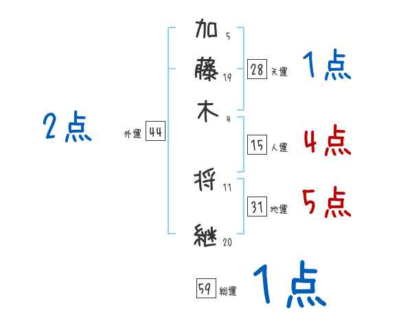 加藤木将継さんの画数の鑑定結果