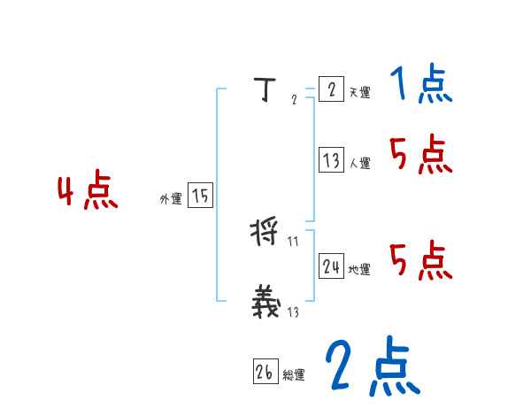 丁将義さんの画数の鑑定結果