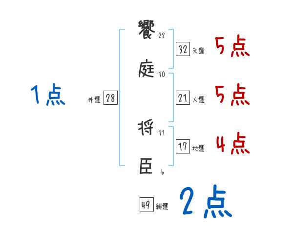 饗庭将臣さんの画数の鑑定結果