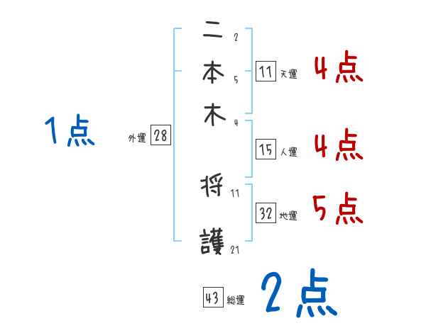 二本木将護さんの画数の鑑定結果