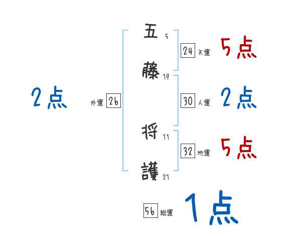 五藤将護さんの画数の鑑定結果