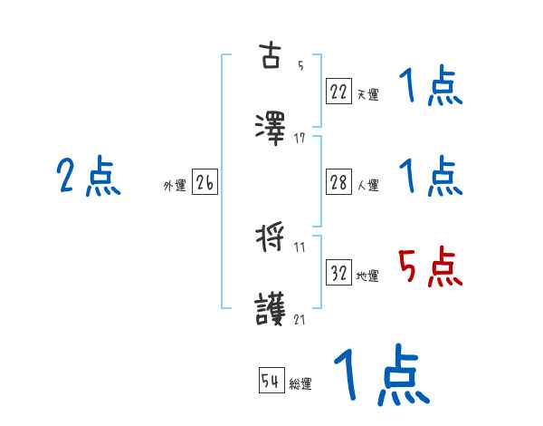 古澤将護さんの画数の鑑定結果