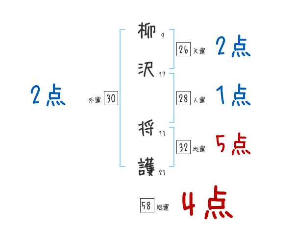 柳沢将護さんの画数の鑑定結果