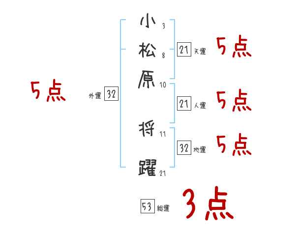 小松原将躍さんの画数の鑑定結果