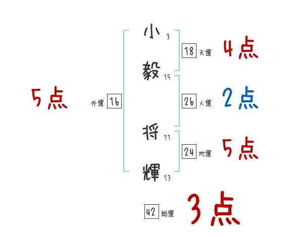 小毅将輝さんの画数の鑑定結果
