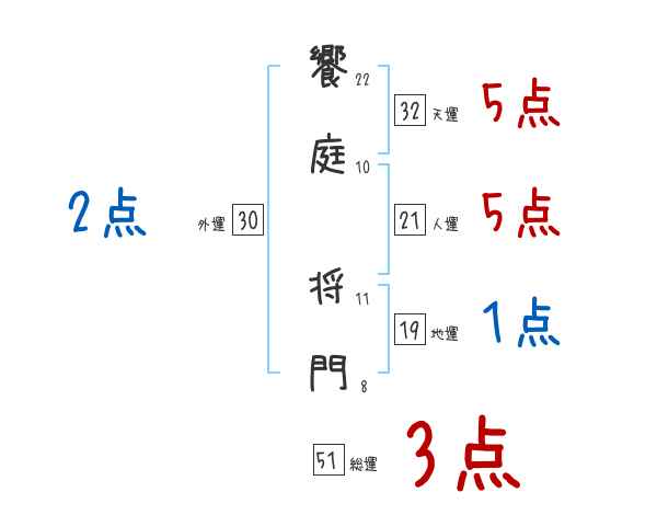 饗庭将門さんの画数の鑑定結果