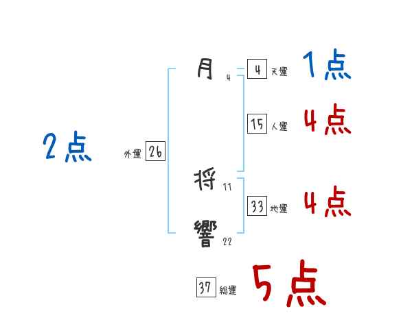 天運![]() | 月将響さんの天運は4画の1つ星!感情が不安定で苦労するかも。周囲との協調を心掛けましょう。 家系が持つ宿命的な運勢を表します。祖先から受け継いだ苗字ですので自分の力が及びません。家柄を象徴します。 |