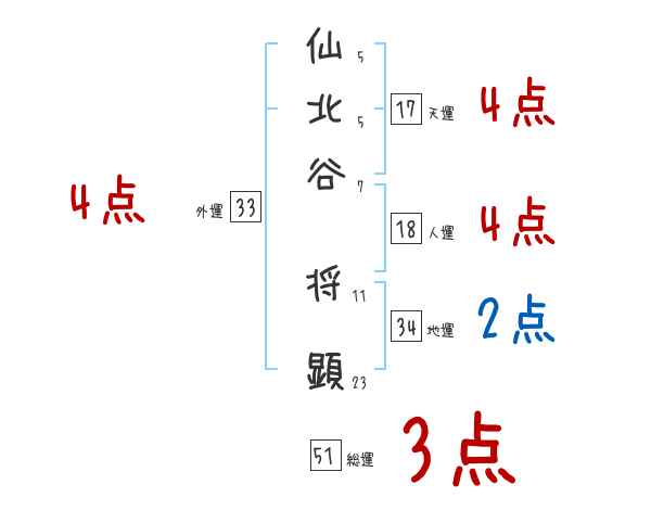 仙北谷将顕さんの画数の鑑定結果