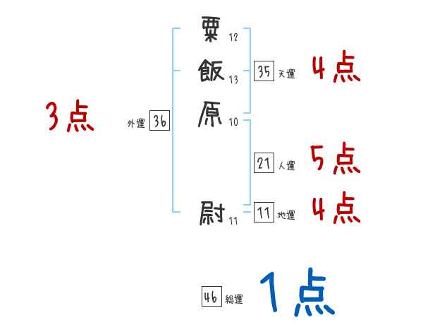 粟飯原尉さんの画数の鑑定結果